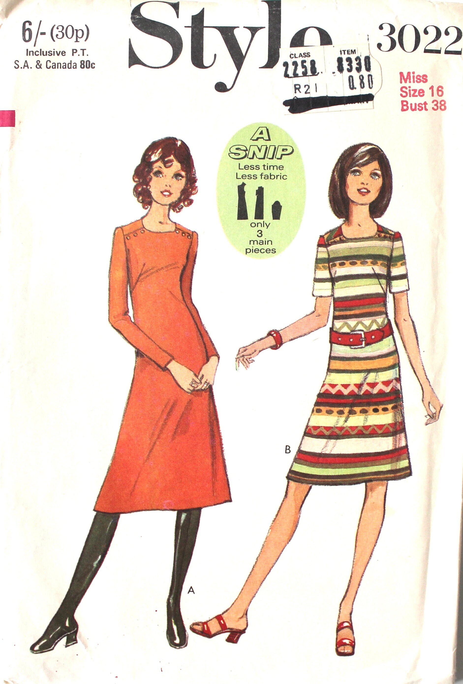 Back Zippered Dress Bust 38 Style 3022 Vintage Sewing Pattern Etsy